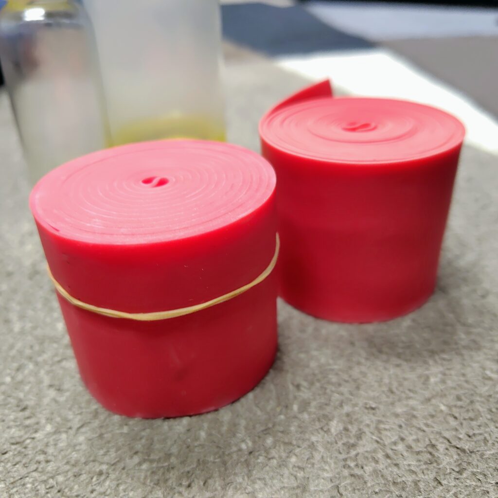 ゴムバンドを巻きコンプレッション圧迫、少し動かしてから解くことで